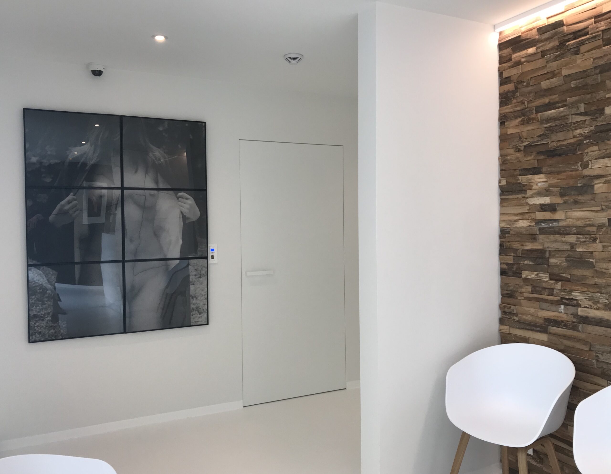 Fully integrated frames, allowing the door to seamlessly blend into the wall. This approach creates a sleek, modern appearance without visible trim or hinges.